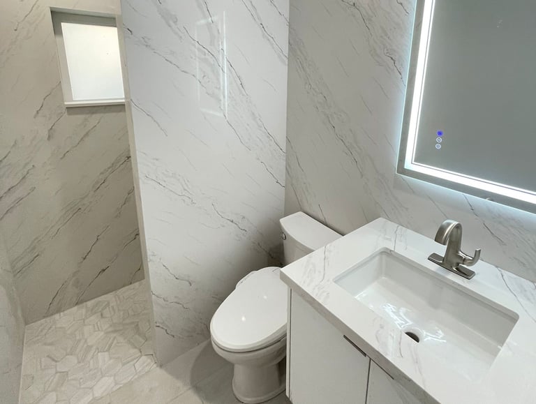 Turn your bathroom into an oasis of relaxation. We remodel bathrooms combining elegance, functionality, and luxurious finishes.